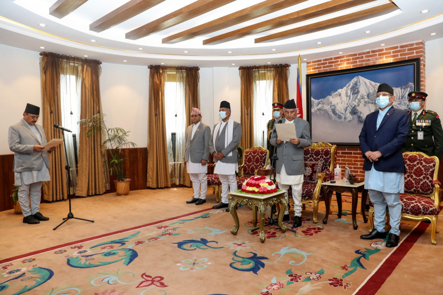 राष्ट्रपति कार्यालय शीतलनिवासमा आयोजित कार्यक्रममा राष्ट्रपति रामचन्द्र पौडेलले मन्त्रीलाई पद तथा गोपनीयताको शपथ गराएका हुन्